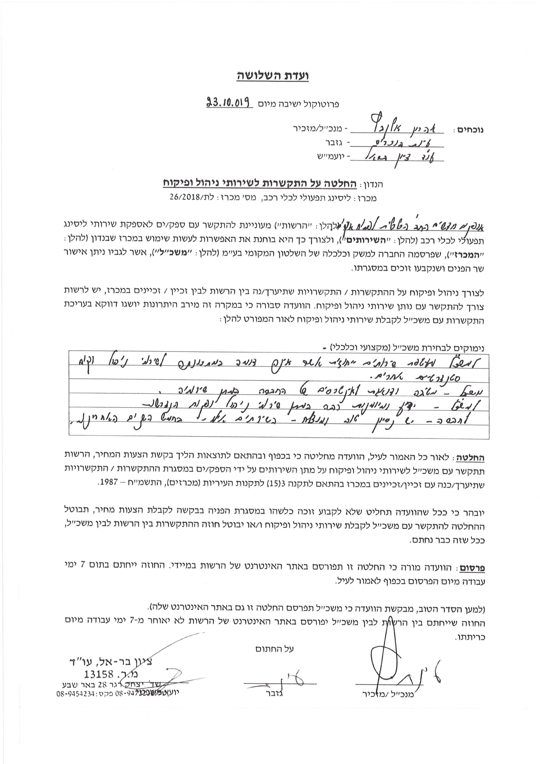 החלטה על התקשרות לשירותי ניהול ופיקוח (2)